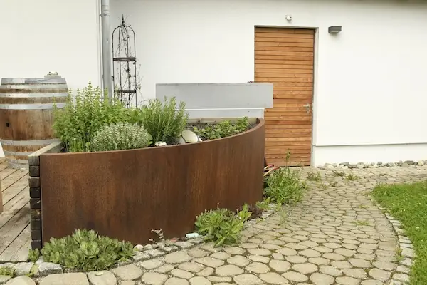 Cortenstahl ist ein speziell legierter Baustahl, der sich durch erhöhte Festigkeit und Witterungsbeständigkeit auszeichnet. Für den Garten bedeutet das: Elemente wie Hochbeete oder Feuerschalen behalten ihre Form auch bei wechselnden Wetterbedingungen und bieten gleichzeitig die Möglichkeit, kreative und langlebige Designs umzusetzen.