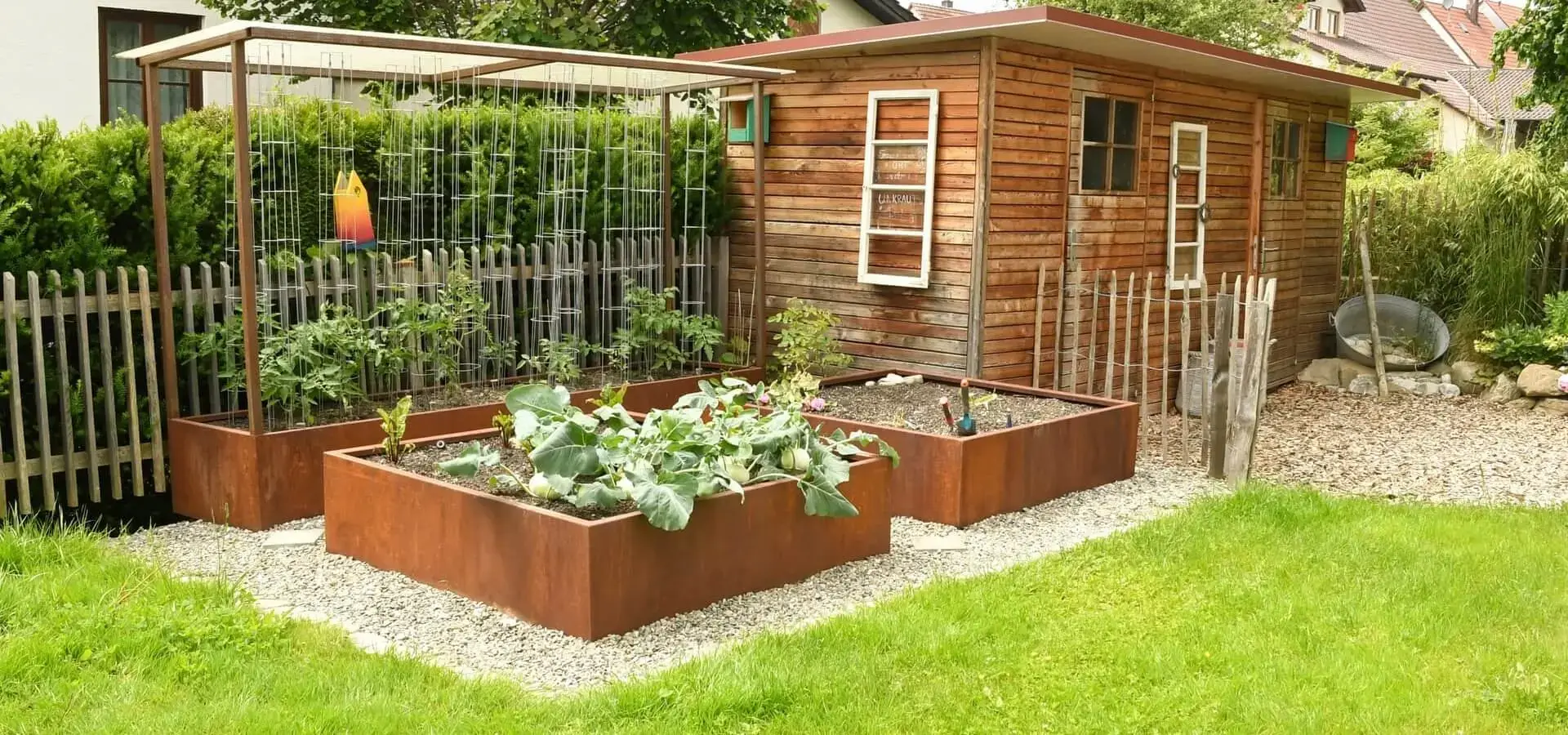 Langlebige Cortenstahl-Gartenhochbeete und Pflanzenkübel vereinen Ästhetik und Funktionalität für effizientes Gärtnern.